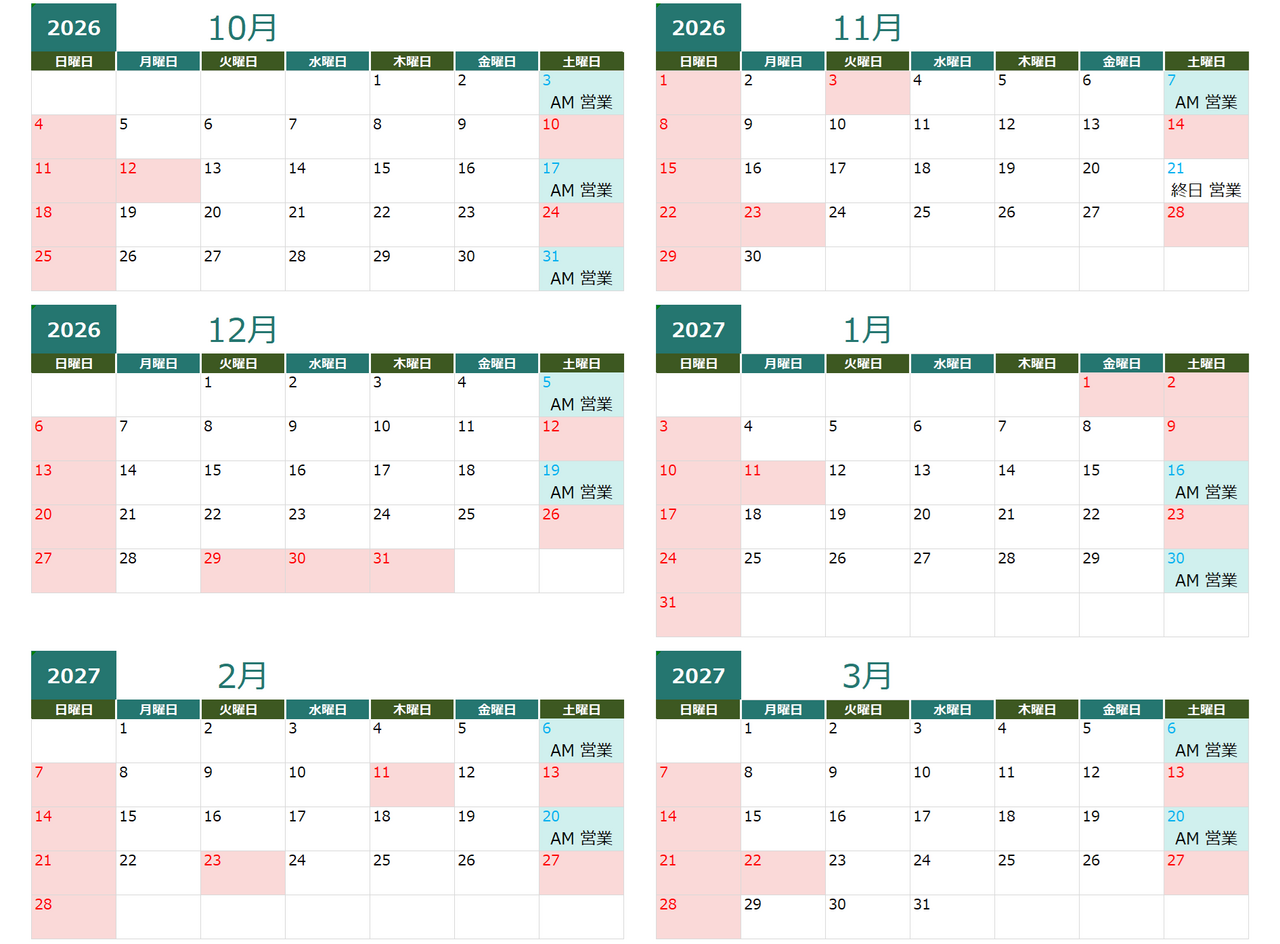 なお、平日以外も土曜日は不定期で営業しています。本ページ記載の営業日カレンダーをご確認ください。