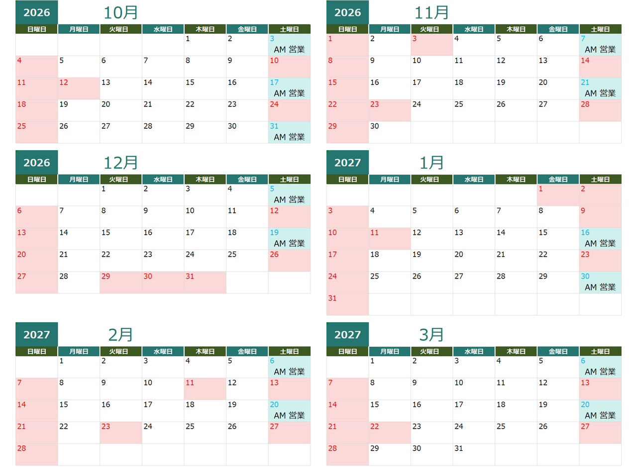 なお、平日以外も土曜日は不定期で営業しています。本ページ記載の営業日カレンダーをご確認ください。