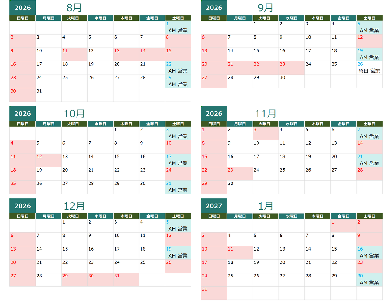 予約受付時間 平日8:30~17:00/土曜日(不定期)