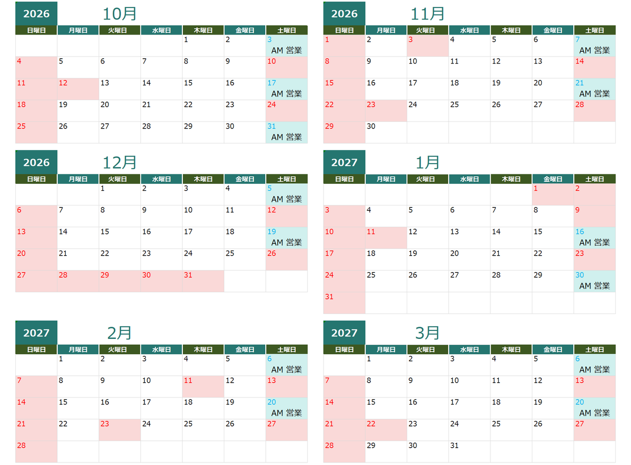 なお、平日以外も土曜日は不定期で営業しています。本ページ記載の営業日カレンダーをご確認ください。
